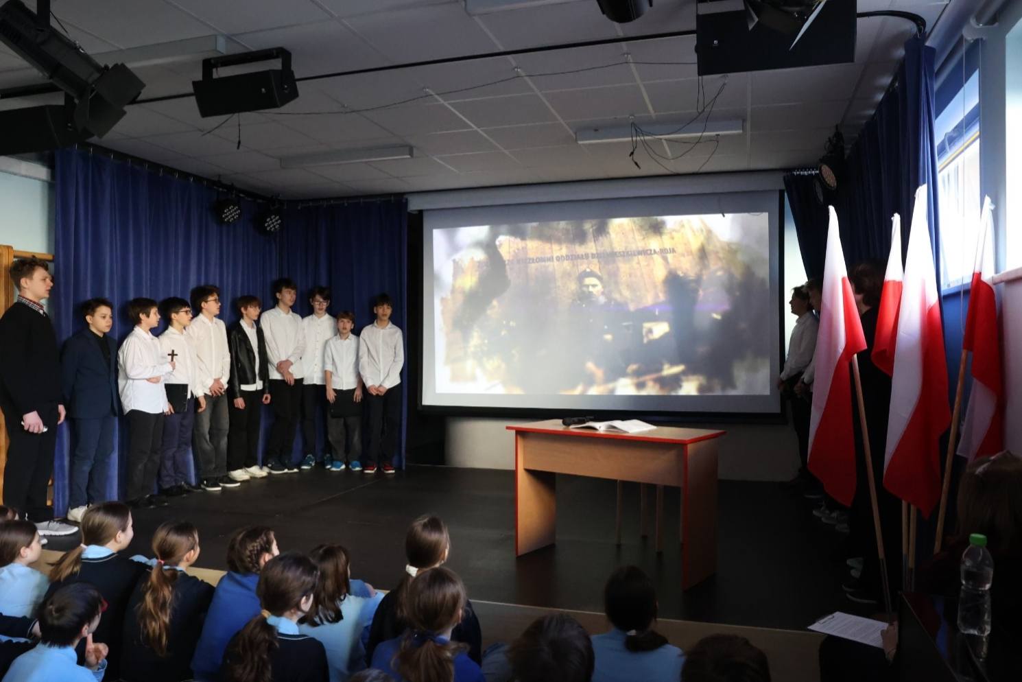 Klasa VII podczas dzisiejszej akademii przypomniała nam historię Żołnierzy niezłomnych, żołnierzy wyklętych